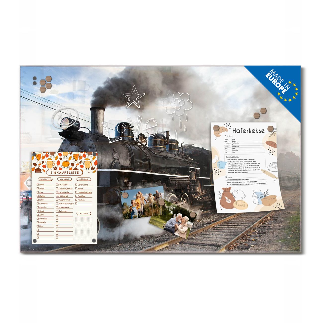 Ein Stück Design, das Ihren Alltag organisiert. Schreiben, heften, inspirieren - alles an einem Ort. Qualität, die man spürt. Montage leicht gemacht. Handwerk mit Herz - veredelt in Sachsen. Einzigartiges Design mit Motiv Motiv Dampflok Beschreibbare Glasoberfläche, leicht zu reinigen Starke Magnetkraft durch Stahlrückwand Inklusive 4 Neodym-Magneten Flexible Montageoptionen Handveredelt in Sachsen - Qualität, die bleibt