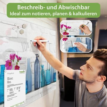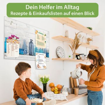 Auf der glatten Glasoberfläche lassen sich Termine, Rezepte oder Notizen ganz einfach mit Kreidestiften festhalten und rückstandslos entfernen. Starke Neodym-Magnete halten Ihre wichtigsten Erinnerungen sicher an Ort und Stelle. So entsteht Ihre ganz persönliche Ideenwand - jeden Tag neu.