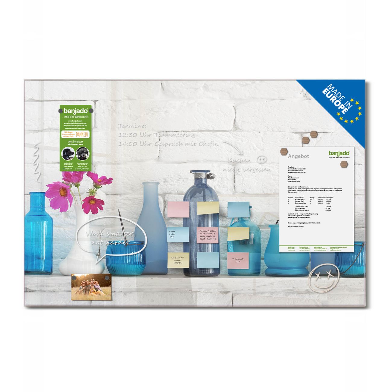 Die banjado Glas Magnettafel mit dem Motiv Motiv Dekoartikel Blau verbindet Funktionalität mit Stil. Sie ersetzt das Zettelchaos durch klare Strukturen und bringt dabei eine warme, natürliche Atmosphäre in Ihr Zuhause. Ob im Büro, in der Küche oder im Eingangsbereich - dieses Design-Board zieht Blicke an und sorgt für Ordnung mit Charakter.