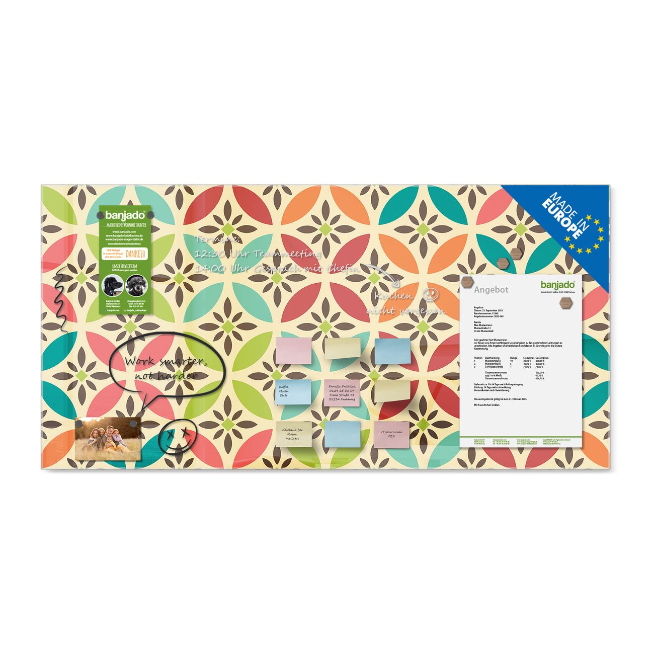 Die banjado Glas Magnettafel mit dem Motiv Motiv Diamant Muster verbindet Funktionalität mit Stil. Sie ersetzt das Zettelchaos durch klare Strukturen und bringt dabei eine warme, natürliche Atmosphäre in Ihr Zuhause. Ob im Büro, in der Küche oder im Eingangsbereich - dieses Design-Board zieht Blicke an und sorgt für Ordnung mit Charakter.
