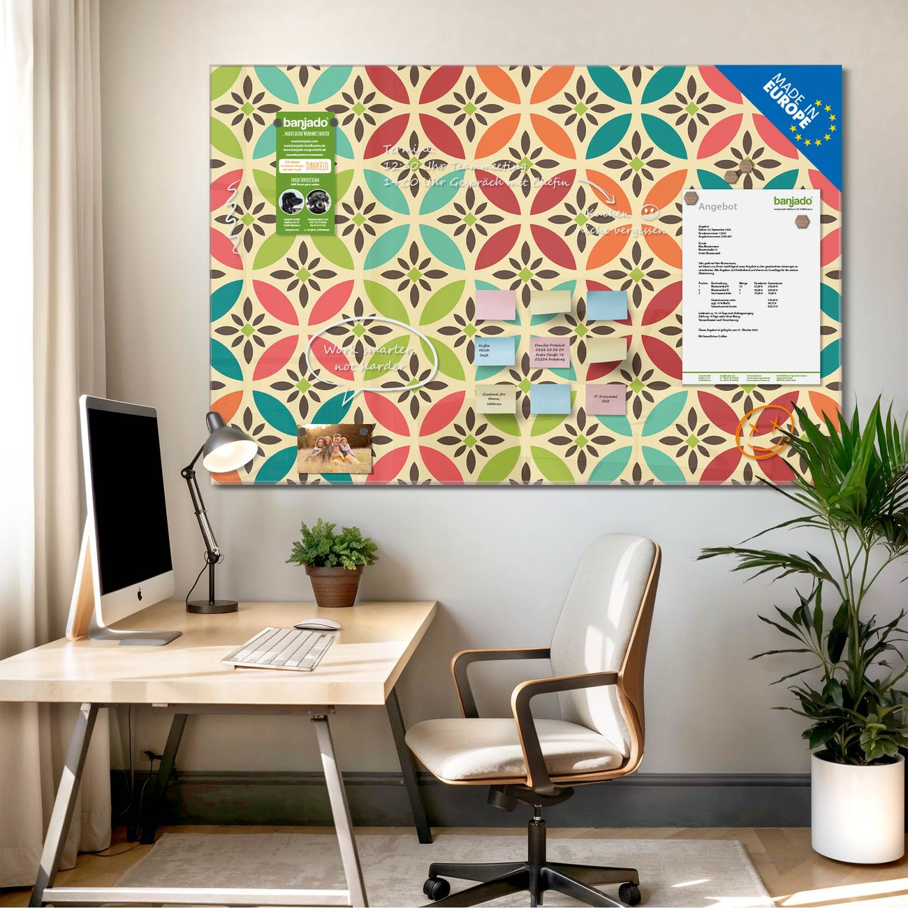 Die banjado Glas Magnettafel mit dem Motiv Motiv Diamant Muster verbindet Funktionalität mit Stil. Sie ersetzt das Zettelchaos durch klare Strukturen und bringt dabei eine warme, natürliche Atmosphäre in Ihr Zuhause. Ob im Büro, in der Küche oder im Eingangsbereich - dieses Design-Board zieht Blicke an und sorgt für Ordnung mit Charakter.