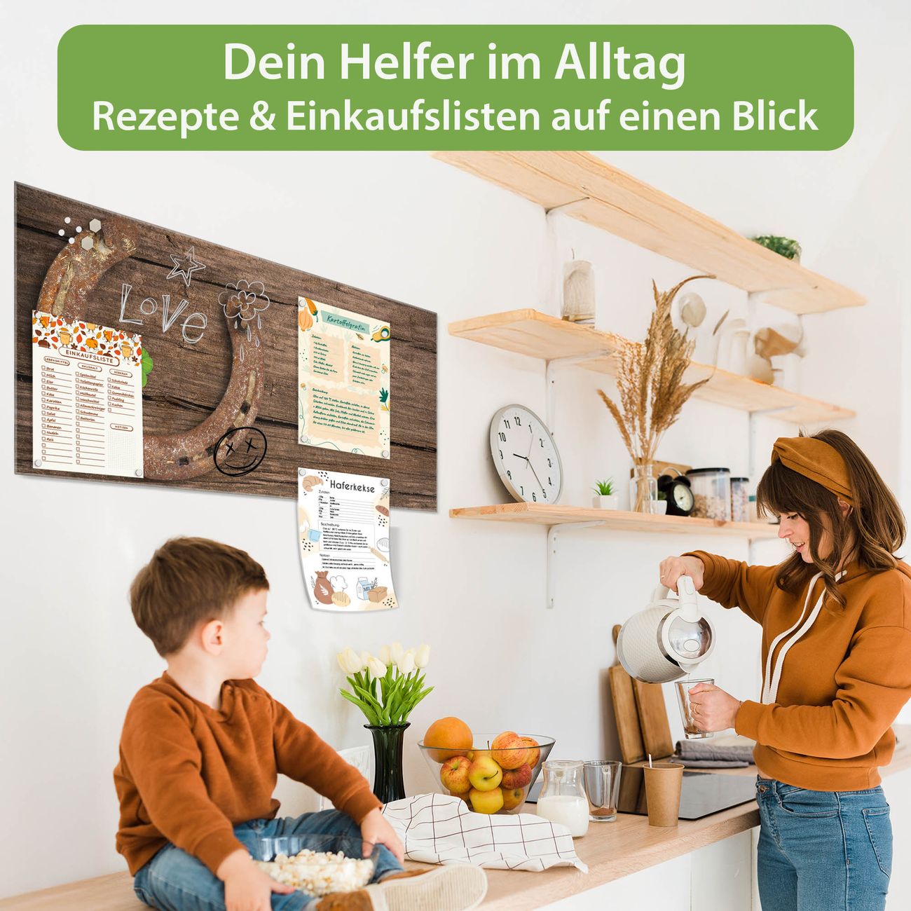 Die banjado Glas Magnettafel mit dem Motiv Motiv Doppeltes Glück verbindet Funktionalität mit Stil. Sie ersetzt das Zettelchaos durch klare Strukturen und bringt dabei eine warme, natürliche Atmosphäre in Ihr Zuhause. Ob im Büro, in der Küche oder im Eingangsbereich - dieses Design-Board zieht Blicke an und sorgt für Ordnung mit Charakter.