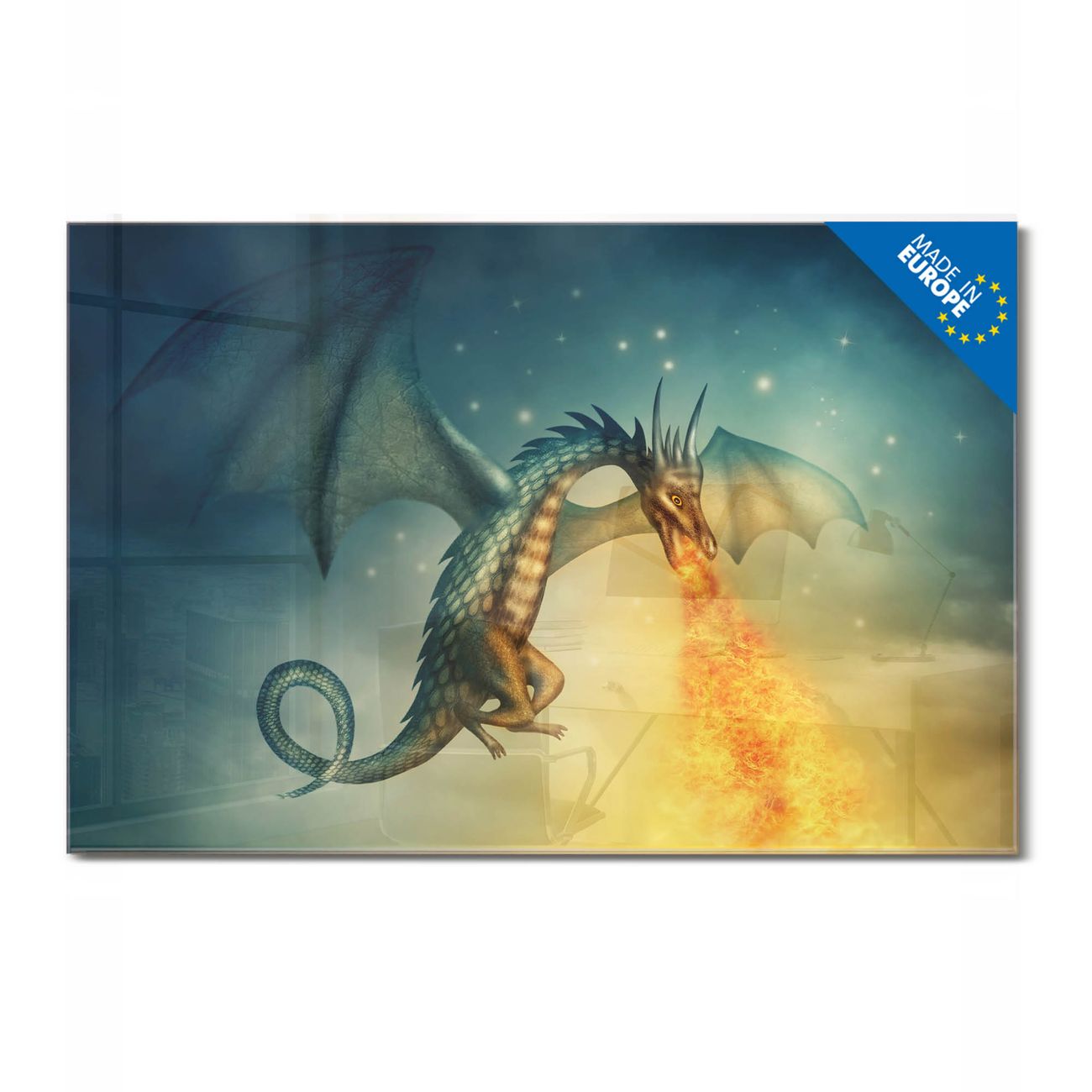 Glas Magnettafel im Querformat Motiv Drachen