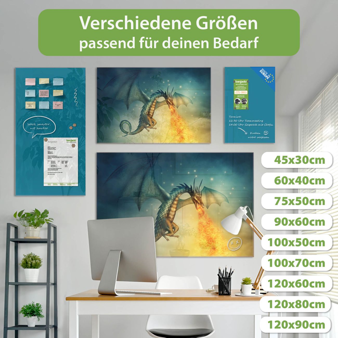 Jede Glas Magnettafel wird in unserer Werkstatt von Hand gefertigt und sorgfältig geprüft. So erhalten Sie ein echtes Qualitätsprodukt, das Funktion und Ästhetik perfekt vereint.?? Warum banjado?
