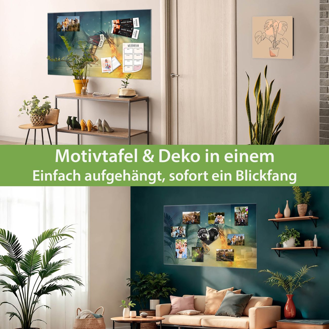 Die banjado Glas Magnettafel mit dem Motiv Motiv Drachen verbindet Funktionalität mit Stil. Sie ersetzt das Zettelchaos durch klare Strukturen und bringt dabei eine warme, natürliche Atmosphäre in Ihr Zuhause. Ob im Büro, in der Küche oder im Eingangsbereich - dieses Design-Board zieht Blicke an und sorgt für Ordnung mit Charakter.