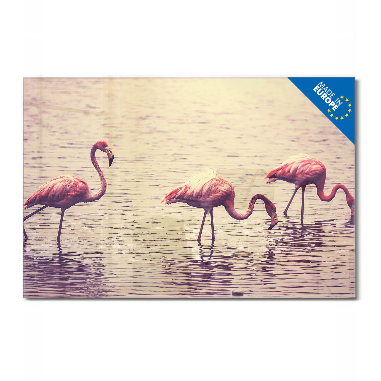 Glas Magnettafel im Querformat Motiv Drei Flamnigos