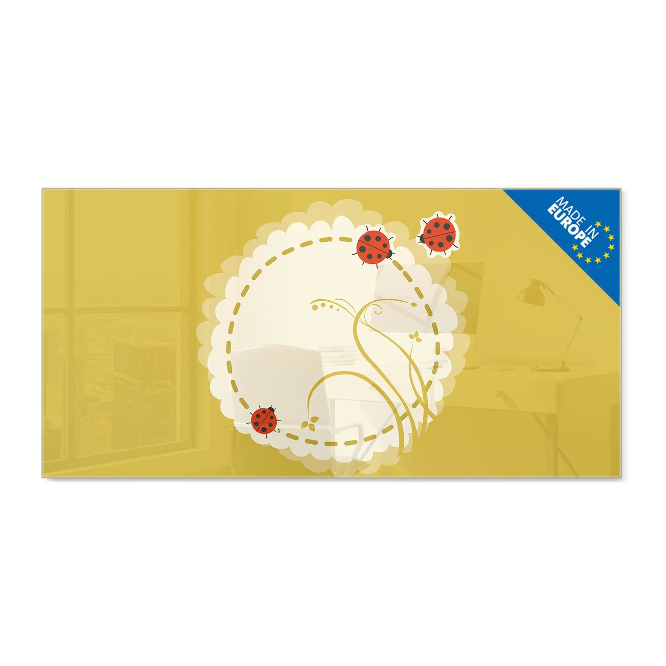Glas Magnettafel im Querformat Motiv Drei Marienkäfer