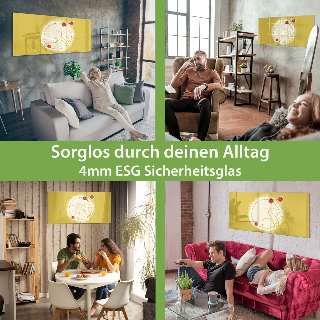- Material: 4mm Sicherheitsglas mit Metallrückwand