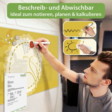 Gefertigt aus gehärtetem Sicherheitsglas mit einer magnetischen Rückwand aus Stahl überzeugt diese Magnettafel durch Stabilität und Langlebigkeit. Die Oberfläche bleibt dauerhaft brillant und pflegeleicht, selbst bei täglicher Nutzung.