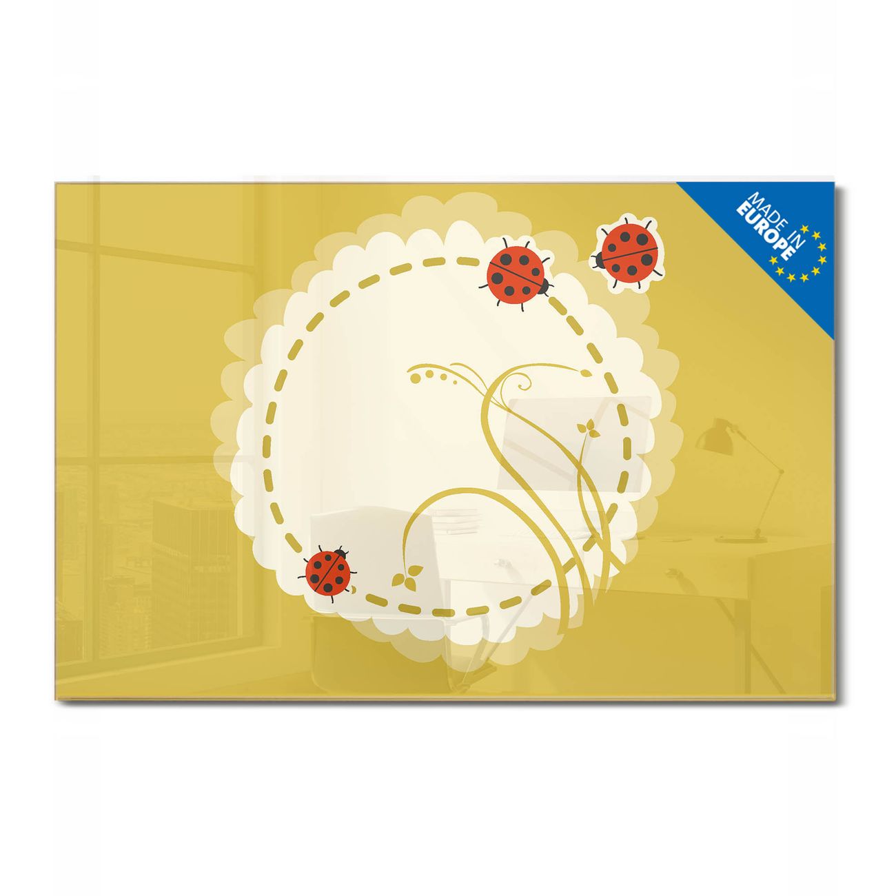 Glas Magnettafel im Querformat Motiv Drei Marienkäfer