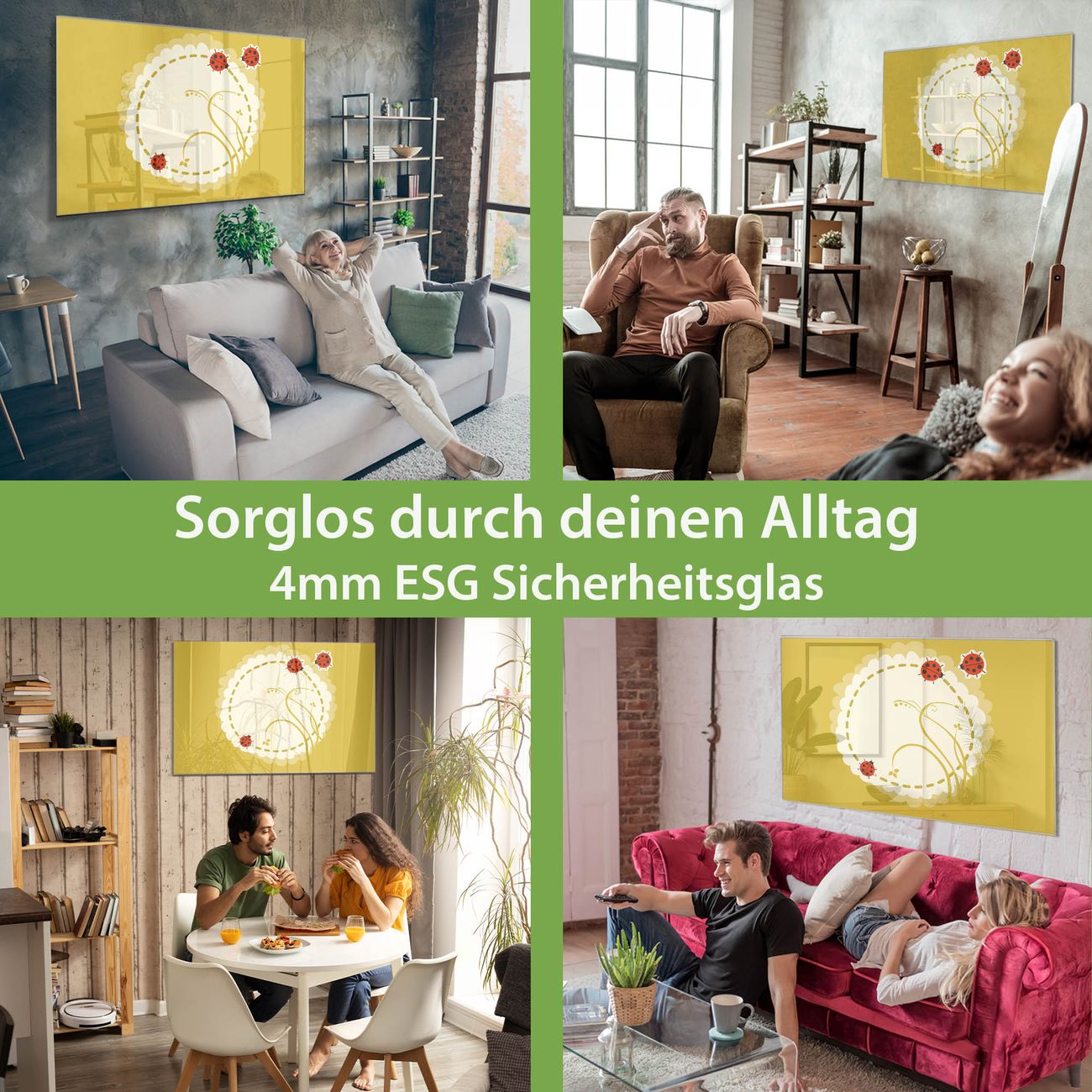 - Material: 4mm Sicherheitsglas mit Metallrückwand