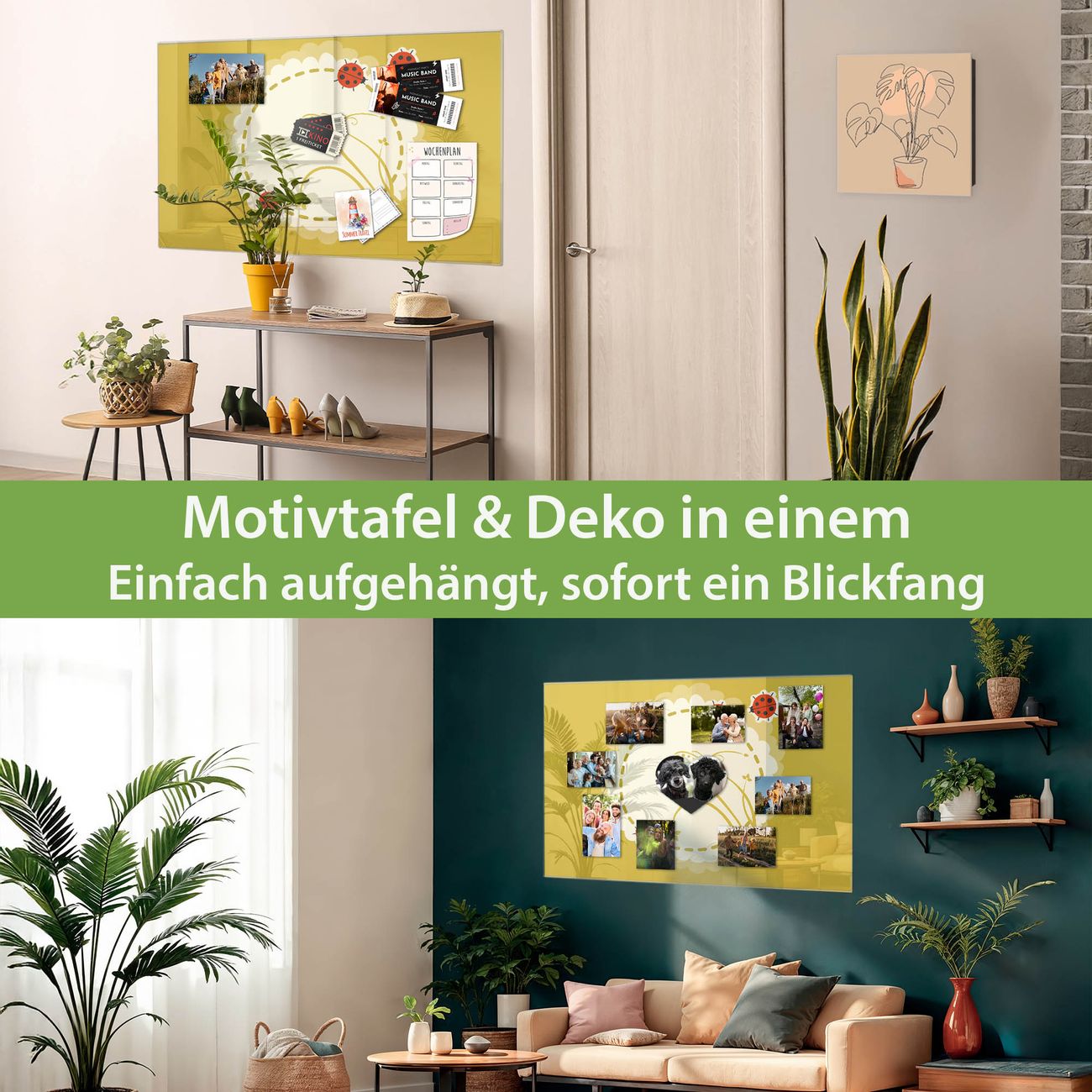 Dank der flachen Bauweise wirkt die Magnetwand fast schwebend an der Wand. Sie können sie mit Montagekleber elegant befestigen oder mit einem passenden Set klassisch verschrauben - beides sorgt für sicheren Halt und eine dezente Optik.