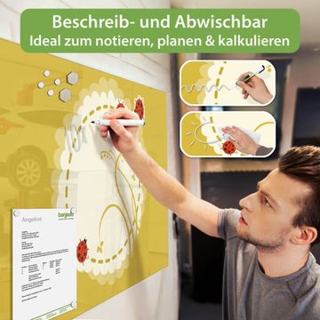 Die banjado Glas Magnettafel mit dem Motiv Motiv Drei Marienkäfer verbindet Funktionalität mit Stil. Sie ersetzt das Zettelchaos durch klare Strukturen und bringt dabei eine warme, natürliche Atmosphäre in Ihr Zuhause. Ob im Büro, in der Küche oder im Eingangsbereich - dieses Design-Board zieht Blicke an und sorgt für Ordnung mit Charakter.