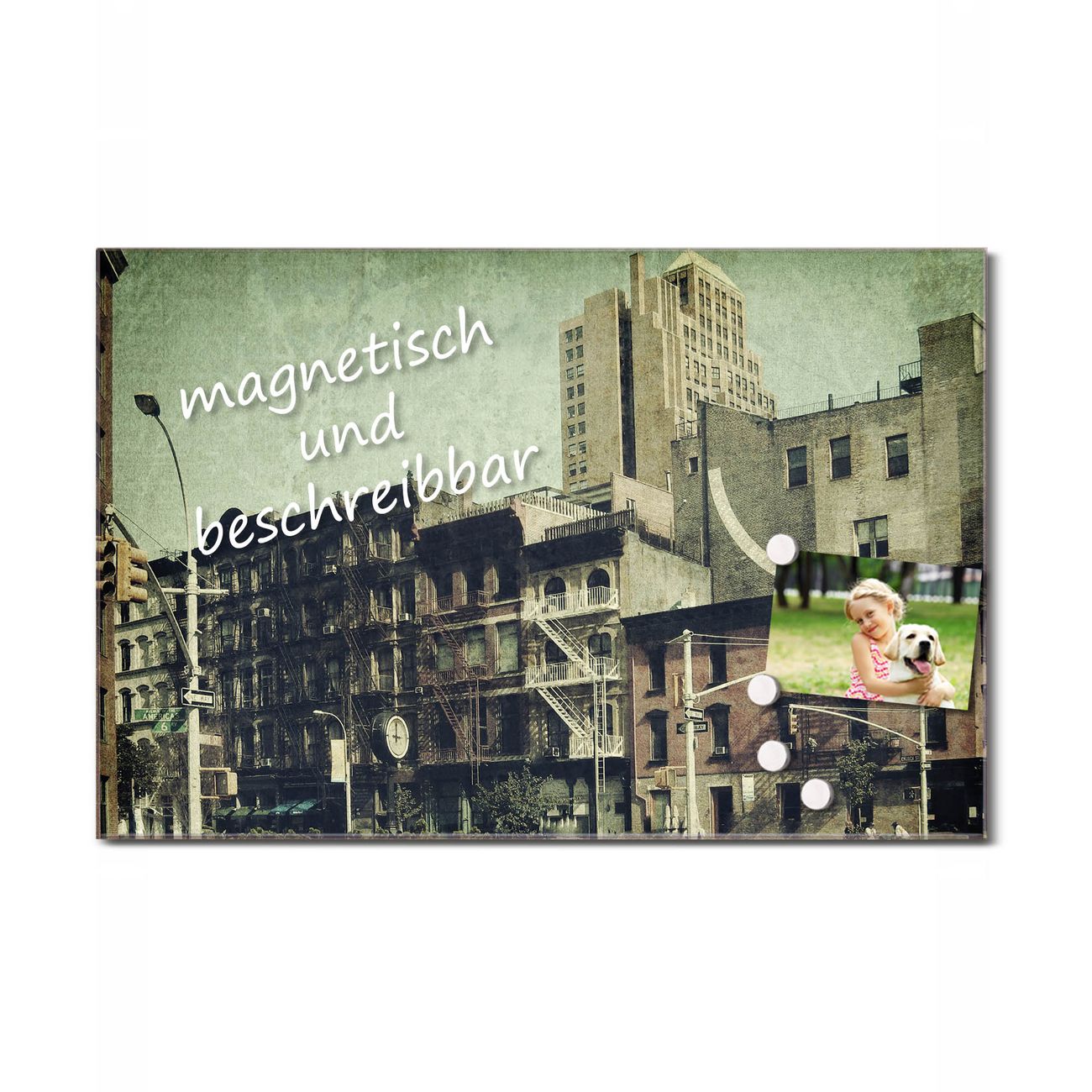 Glas Magnettafel im Querformat Drei Uhr