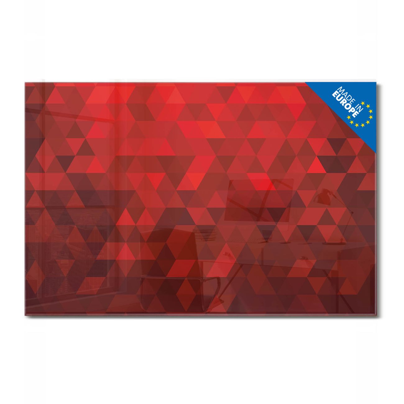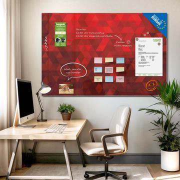 Glas Magnettafel im Querformat Motiv Dreiecke Rot