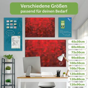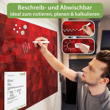 Die banjado Glas Magnettafel mit dem Motiv Motiv Dreiecke Rot verbindet Funktionalität mit Stil. Sie ersetzt das Zettelchaos durch klare Strukturen und bringt dabei eine warme, natürliche Atmosphäre in Ihr Zuhause. Ob im Büro, in der Küche oder im Eingangsbereich - dieses Design-Board zieht Blicke an und sorgt für Ordnung mit Charakter.
