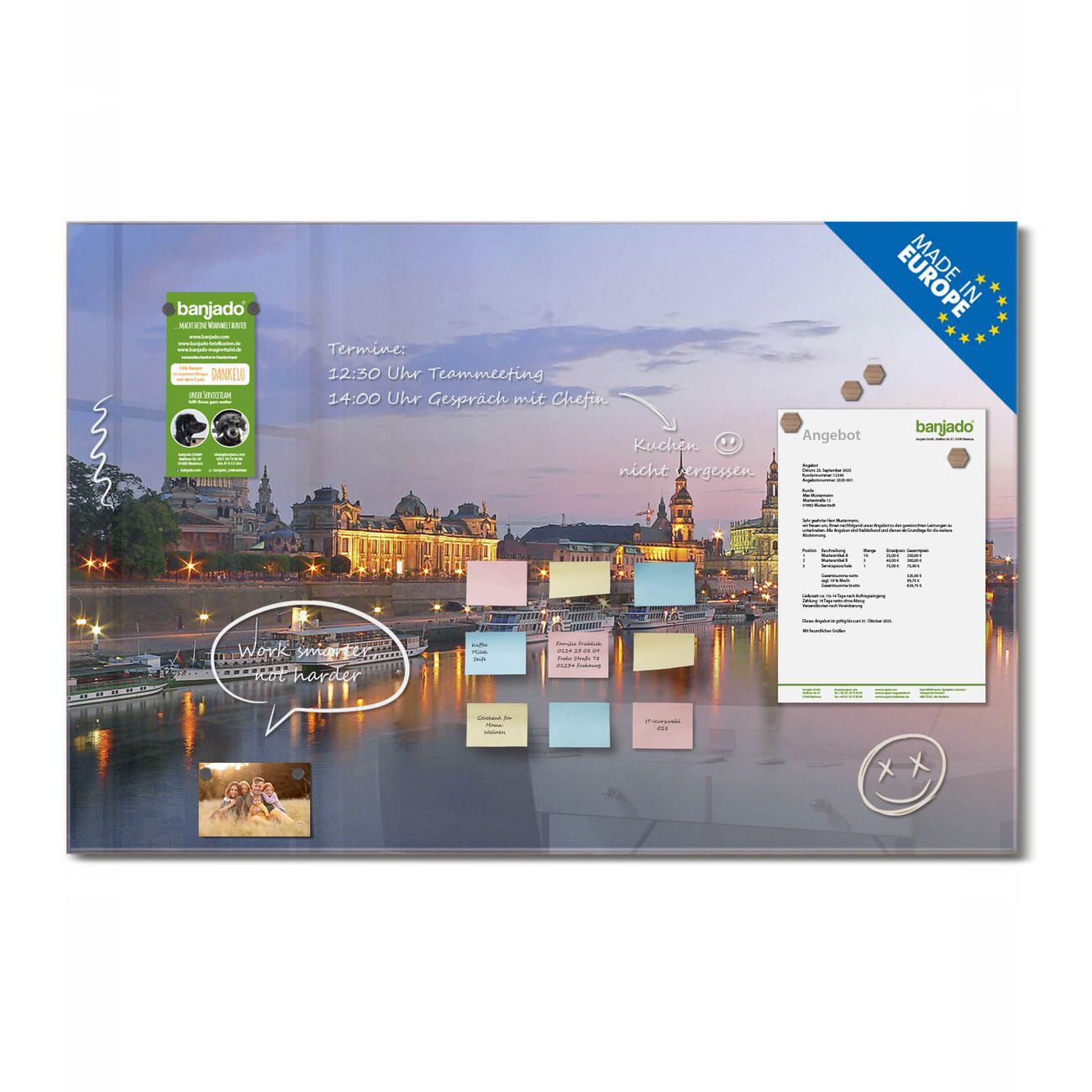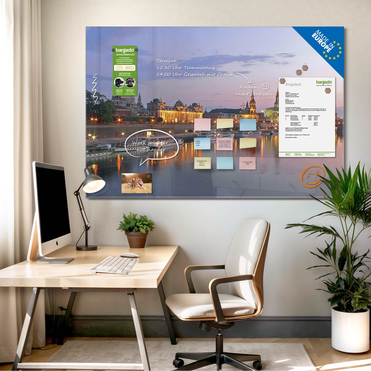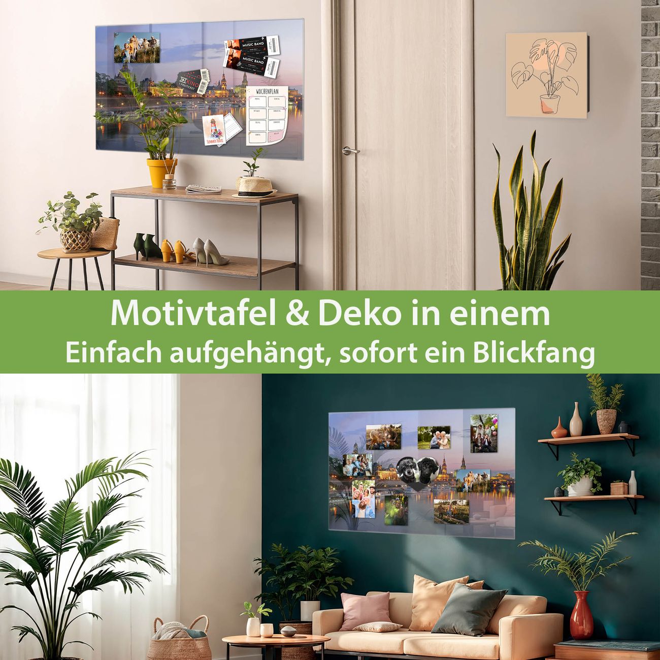 Die banjado Glas Magnettafel mit dem Motiv Motiv Dresden verbindet Funktionalität mit Stil. Sie ersetzt das Zettelchaos durch klare Strukturen und bringt dabei eine warme, natürliche Atmosphäre in Ihr Zuhause. Ob im Büro, in der Küche oder im Eingangsbereich - dieses Design-Board zieht Blicke an und sorgt für Ordnung mit Charakter.