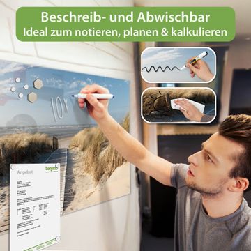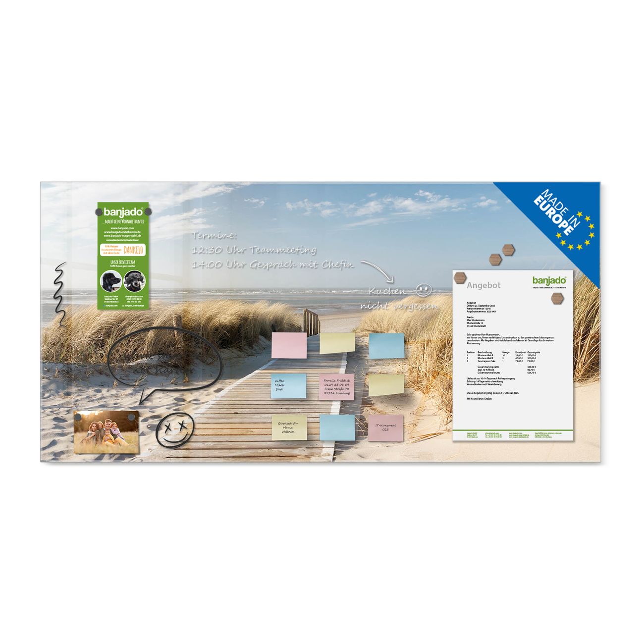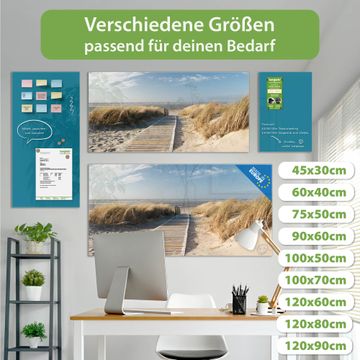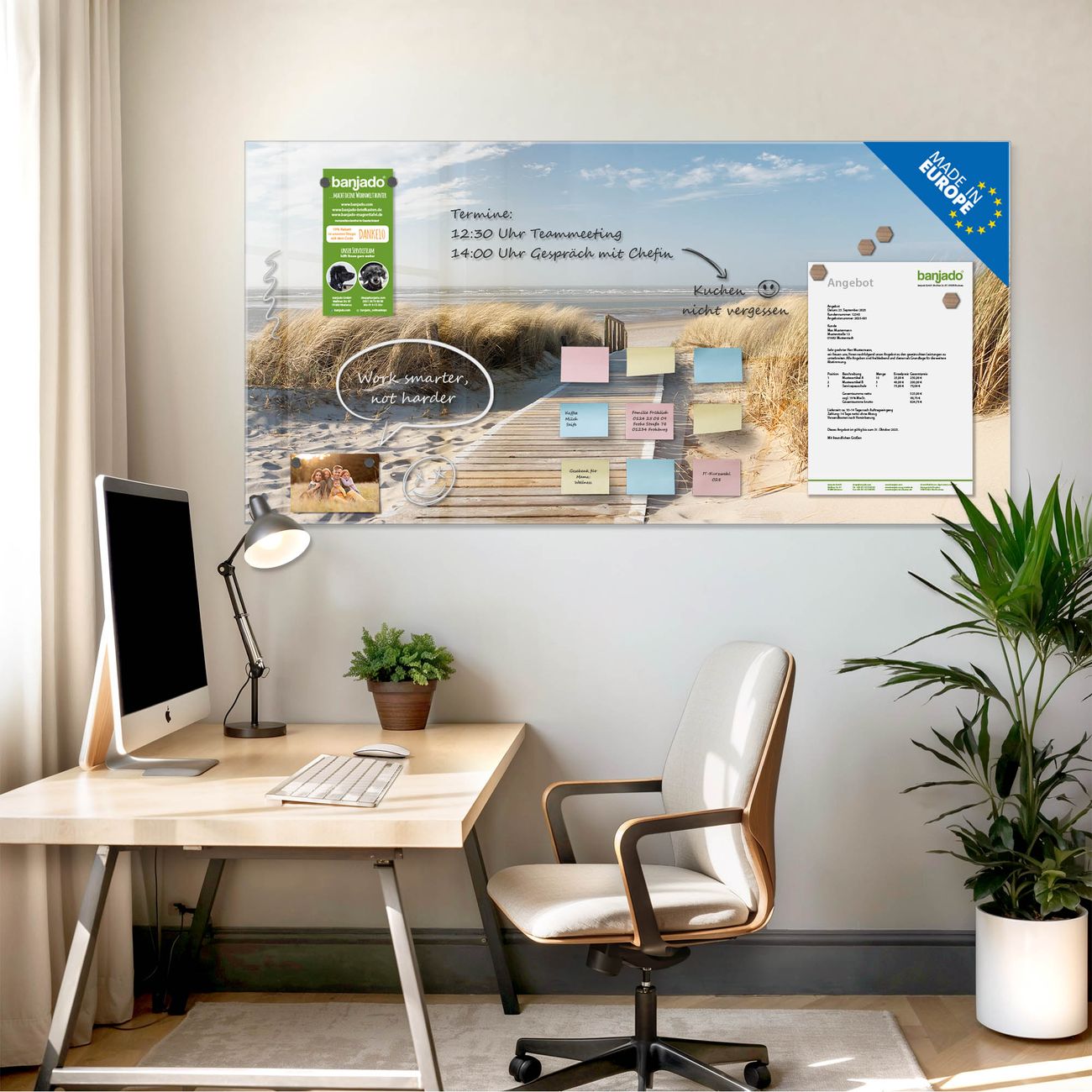 Die banjado Glas Magnettafel mit dem Motiv Motiv Dünen verbindet Funktionalität mit Stil. Sie ersetzt das Zettelchaos durch klare Strukturen und bringt dabei eine warme, natürliche Atmosphäre in Ihr Zuhause. Ob im Büro, in der Küche oder im Eingangsbereich - dieses Design-Board zieht Blicke an und sorgt für Ordnung mit Charakter.