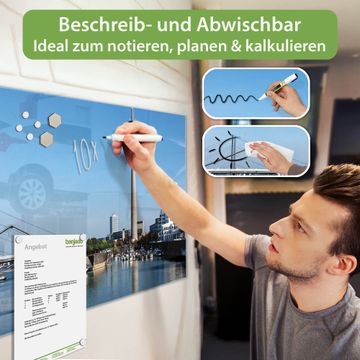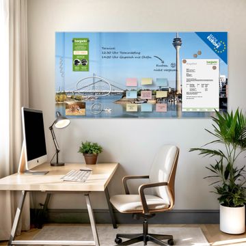 Die banjado Glas Magnettafel mit dem Motiv Motiv Düsseldorf verbindet Funktionalität mit Stil. Sie ersetzt das Zettelchaos durch klare Strukturen und bringt dabei eine warme, natürliche Atmosphäre in Ihr Zuhause. Ob im Büro, in der Küche oder im Eingangsbereich - dieses Design-Board zieht Blicke an und sorgt für Ordnung mit Charakter.