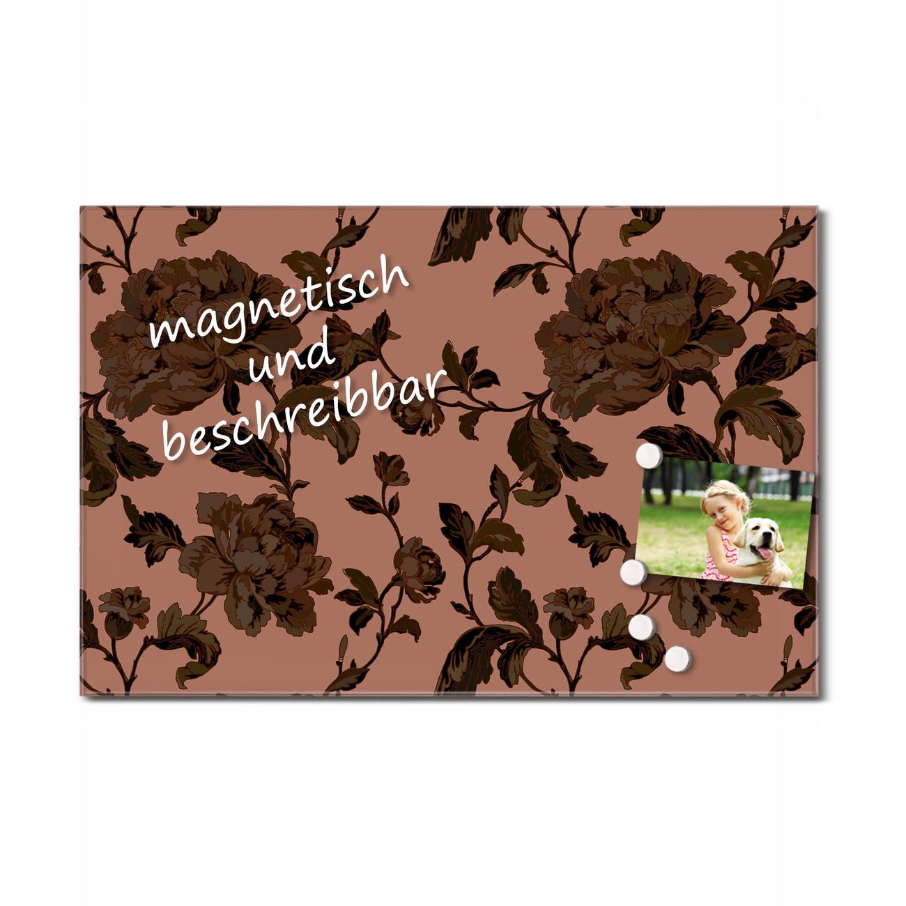 Glas Magnettafel im Querformat Dunkle Blüten
