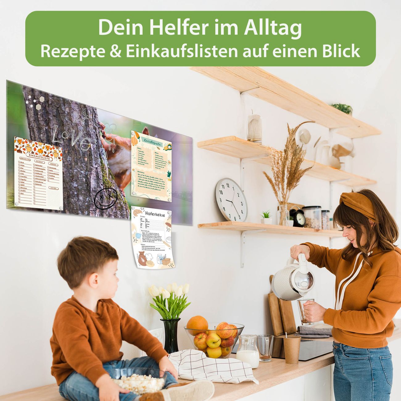 Ein Stück Design, das Ihren Alltag organisiert. Schreiben, heften, inspirieren - alles an einem Ort. Qualität, die man spürt. Montage leicht gemacht. Handwerk mit Herz - veredelt in Sachsen. Einzigartiges Design mit Motiv Motiv Eichhörnchen Beschreibbare Glasoberfläche, leicht zu reinigen Starke Magnetkraft durch Stahlrückwand Inklusive 4 Neodym-Magneten Flexible Montageoptionen Handveredelt in Sachsen - Qualität, die bleibt