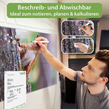 Die banjado Glas Magnettafel mit dem Motiv Motiv Eichhörnchen verbindet Funktionalität mit Stil. Sie ersetzt das Zettelchaos durch klare Strukturen und bringt dabei eine warme, natürliche Atmosphäre in Ihr Zuhause. Ob im Büro, in der Küche oder im Eingangsbereich - dieses Design-Board zieht Blicke an und sorgt für Ordnung mit Charakter.