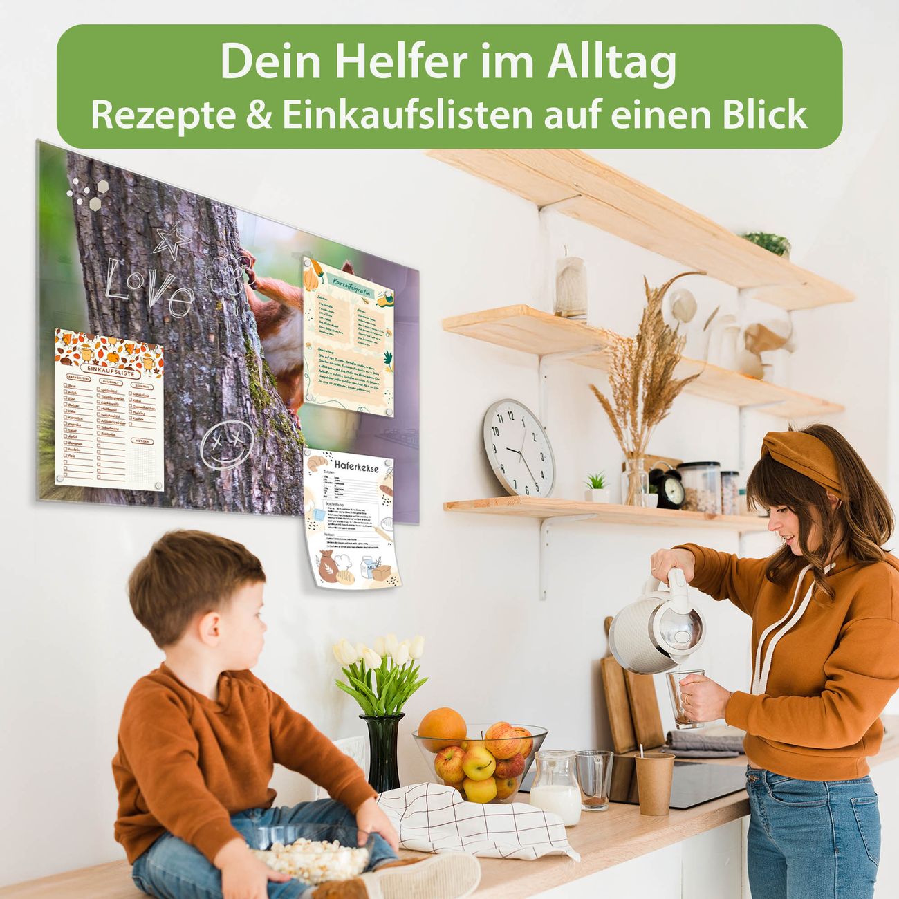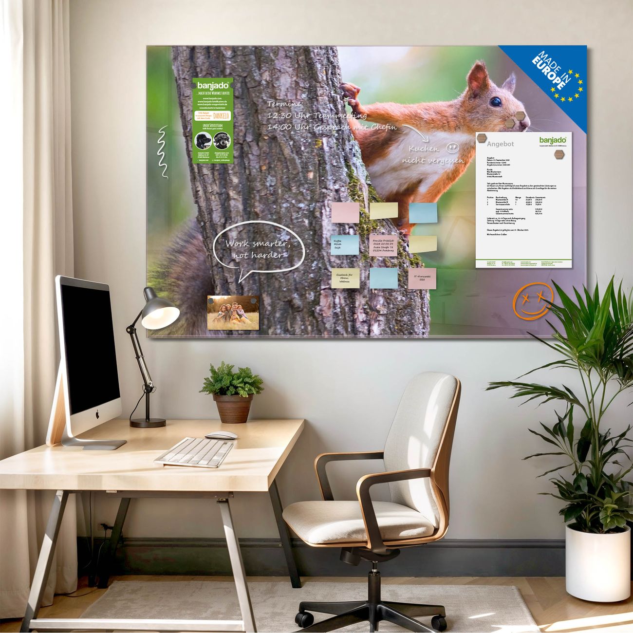 Ein Stück Design, das Ihren Alltag organisiert. Schreiben, heften, inspirieren - alles an einem Ort. Qualität, die man spürt. Montage leicht gemacht. Handwerk mit Herz - veredelt in Sachsen. Einzigartiges Design mit Motiv Motiv Eichhörnchen Beschreibbare Glasoberfläche, leicht zu reinigen Starke Magnetkraft durch Stahlrückwand Inklusive 4 Neodym-Magneten Flexible Montageoptionen Handveredelt in Sachsen - Qualität, die bleibt