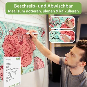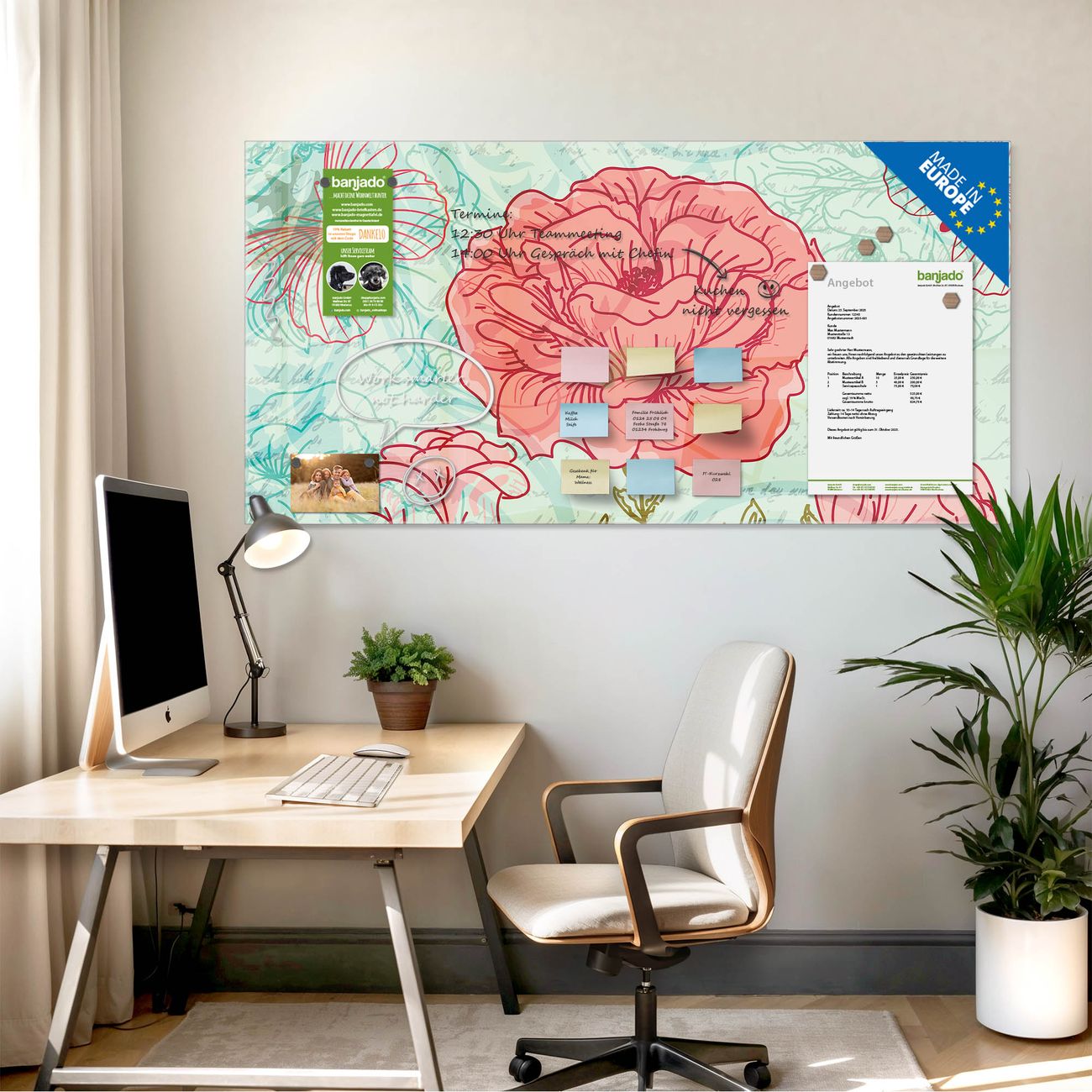 Die banjado Glas Magnettafel mit dem Motiv Motiv Eine Rose Ist Eine Rose verbindet Funktionalität mit Stil. Sie ersetzt das Zettelchaos durch klare Strukturen und bringt dabei eine warme, natürliche Atmosphäre in Ihr Zuhause. Ob im Büro, in der Küche oder im Eingangsbereich - dieses Design-Board zieht Blicke an und sorgt für Ordnung mit Charakter.