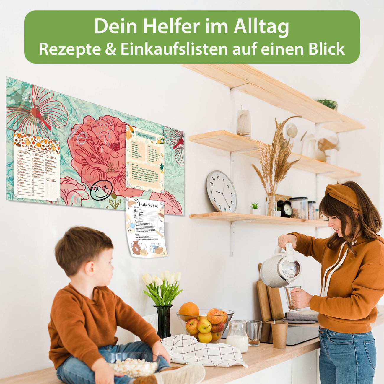 Auf der glatten Glasoberfläche lassen sich Termine, Rezepte oder Notizen ganz einfach mit Kreidestiften festhalten und rückstandslos entfernen. Starke Neodym-Magnete halten Ihre wichtigsten Erinnerungen sicher an Ort und Stelle. So entsteht Ihre ganz persönliche Ideenwand - jeden Tag neu.