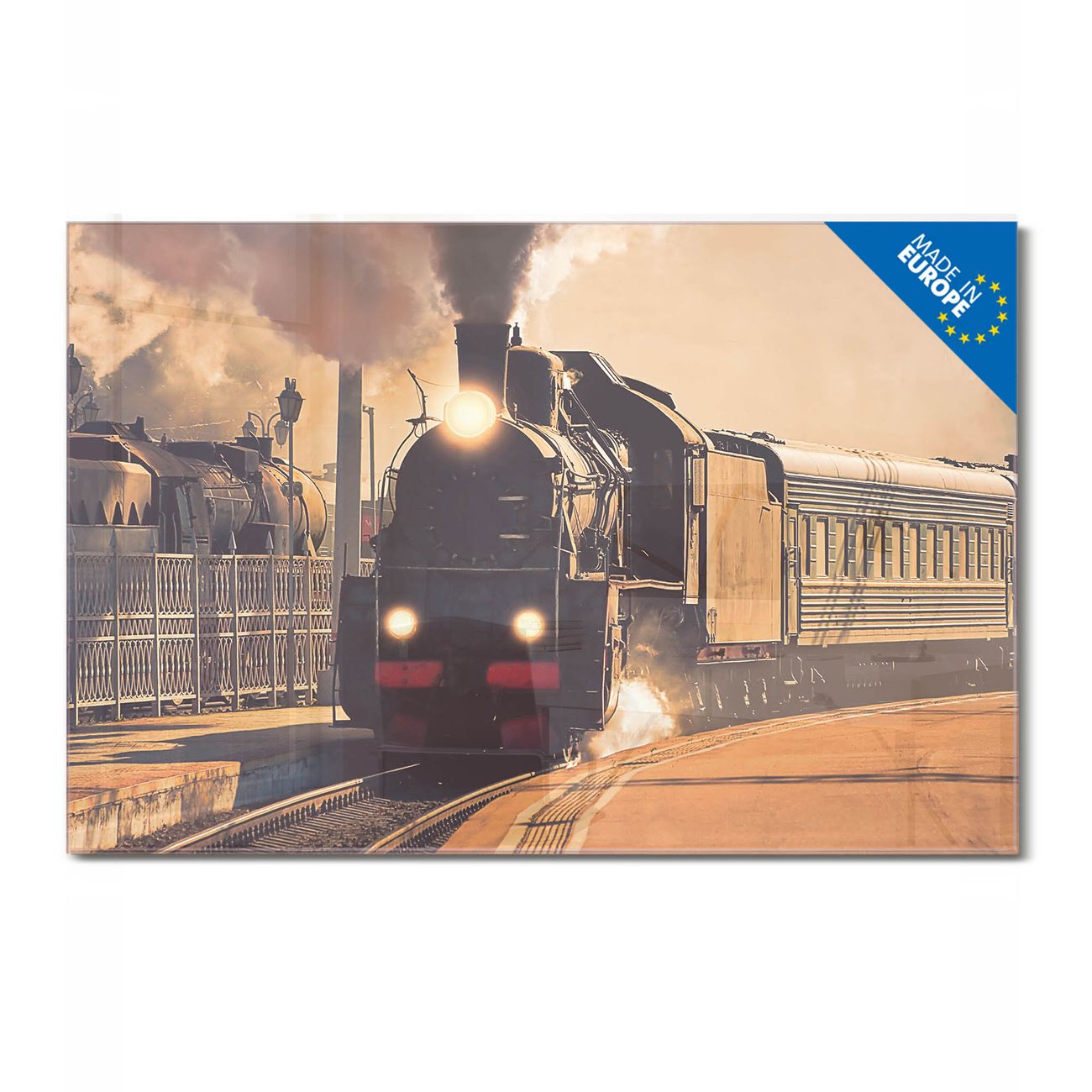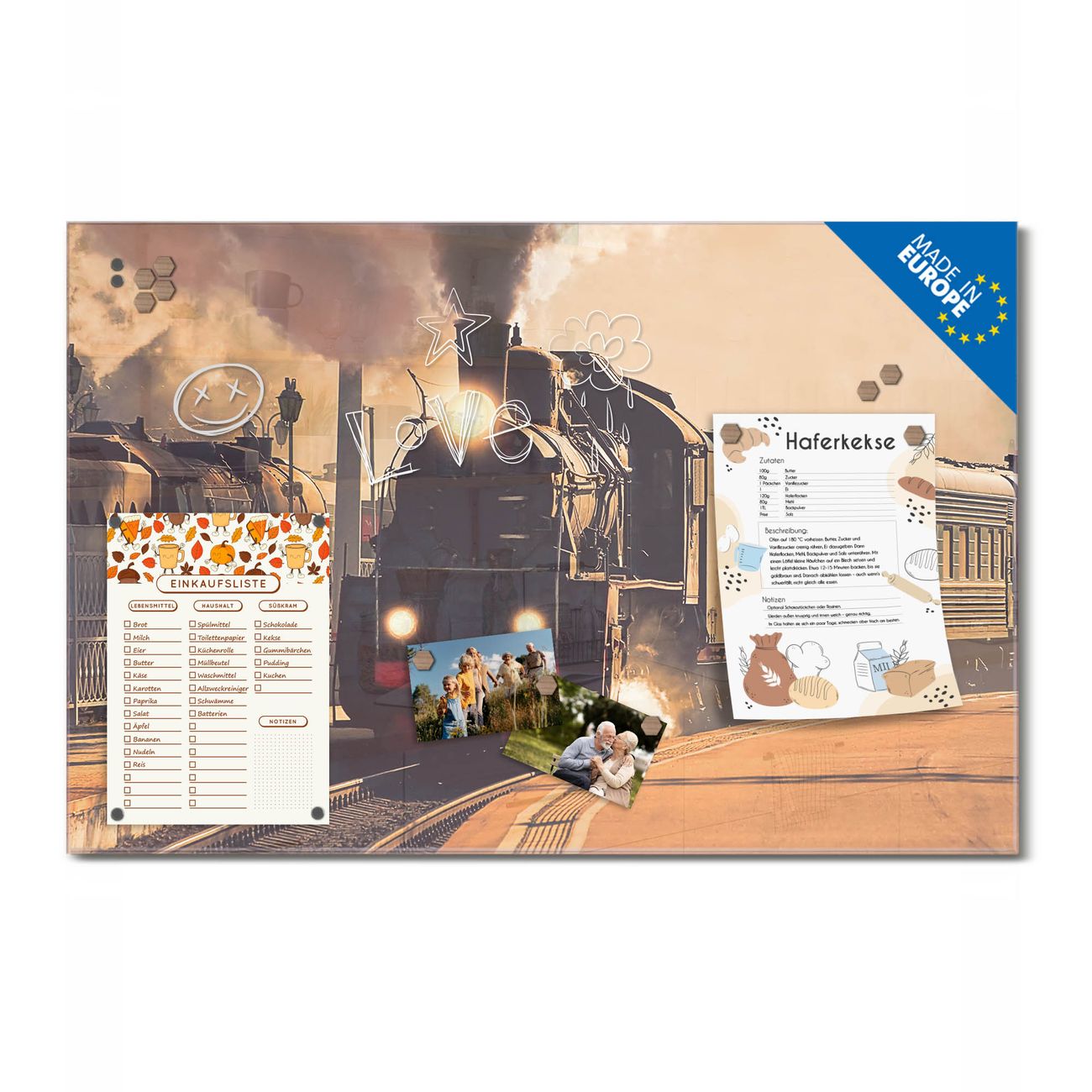 Glas Magnettafel im Querformat Motiv Einfahrender Zug