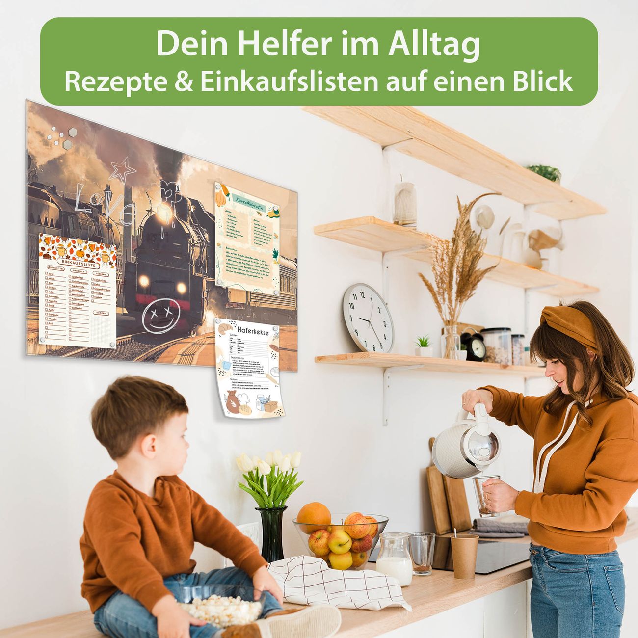 Ein Stück Design, das Ihren Alltag organisiert. Schreiben, heften, inspirieren - alles an einem Ort. Qualität, die man spürt. Montage leicht gemacht. Handwerk mit Herz - veredelt in Sachsen. Einzigartiges Design mit Motiv Motiv Einfahrender Zug Beschreibbare Glasoberfläche, leicht zu reinigen Starke Magnetkraft durch Stahlrückwand Inklusive 4 Neodym-Magneten Flexible Montageoptionen Handveredelt in Sachsen - Qualität, die bleibt