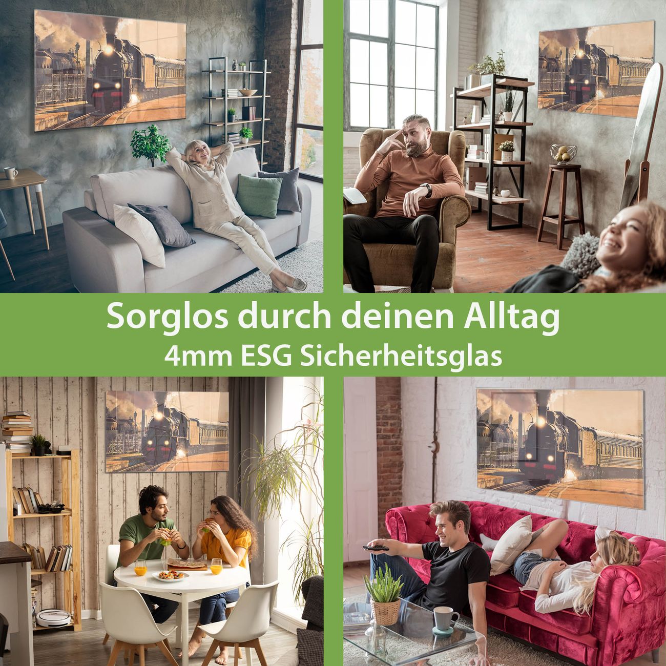 - Material: 4mm Sicherheitsglas mit Metallrückwand