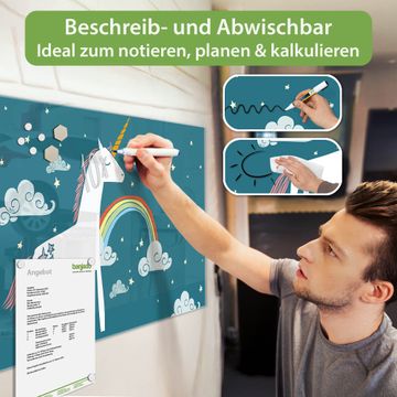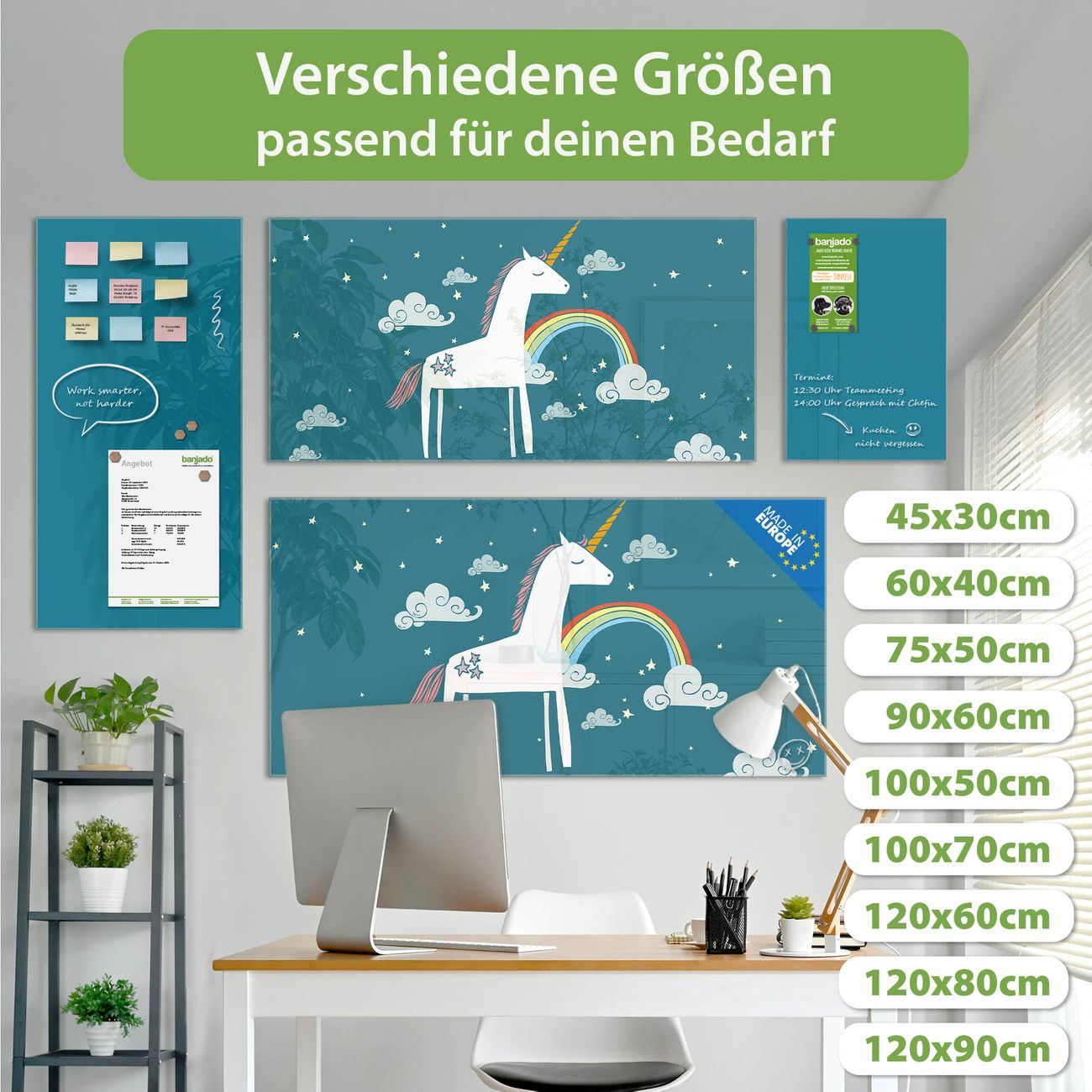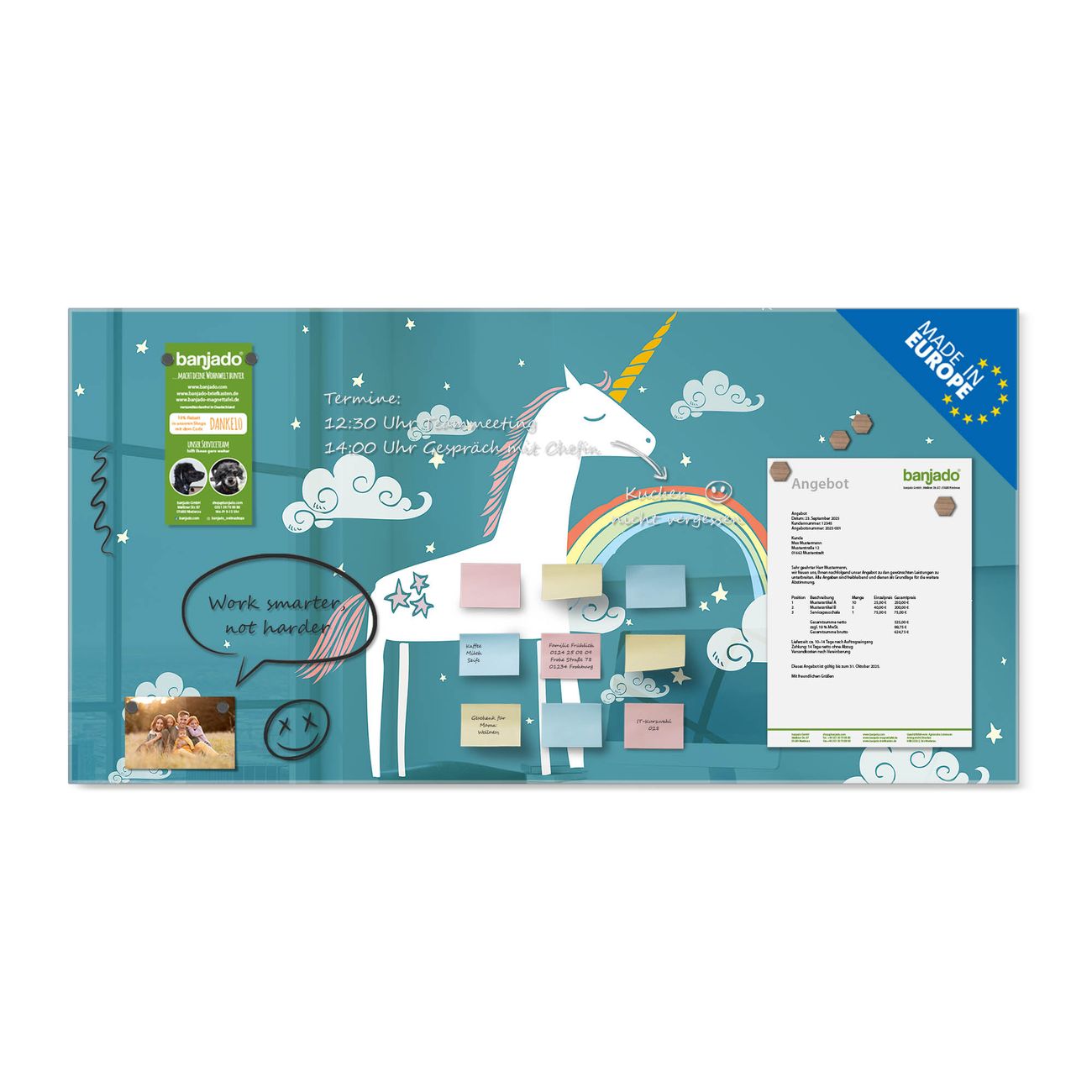 Die banjado Glas Magnettafel mit dem Motiv Motiv Einhorn verbindet Funktionalität mit Stil. Sie ersetzt das Zettelchaos durch klare Strukturen und bringt dabei eine warme, natürliche Atmosphäre in Ihr Zuhause. Ob im Büro, in der Küche oder im Eingangsbereich - dieses Design-Board zieht Blicke an und sorgt für Ordnung mit Charakter.