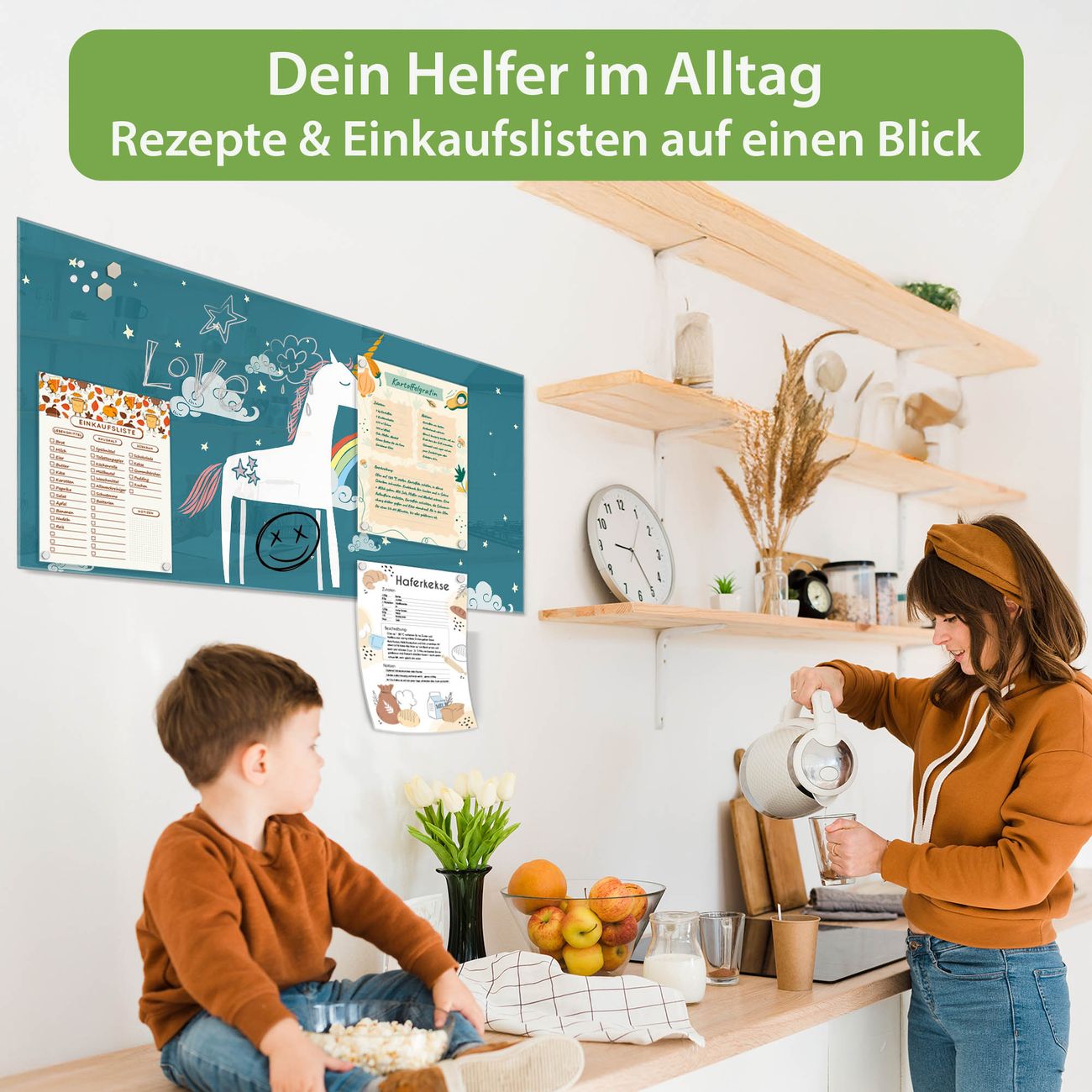 Ein Stück Design, das Ihren Alltag organisiert. Schreiben, heften, inspirieren - alles an einem Ort. Qualität, die man spürt. Montage leicht gemacht. Handwerk mit Herz - veredelt in Sachsen. Einzigartiges Design mit Motiv Motiv Einhorn Beschreibbare Glasoberfläche, leicht zu reinigen Starke Magnetkraft durch Stahlrückwand Inklusive 4 Neodym-Magneten Flexible Montageoptionen Handveredelt in Sachsen - Qualität, die bleibt