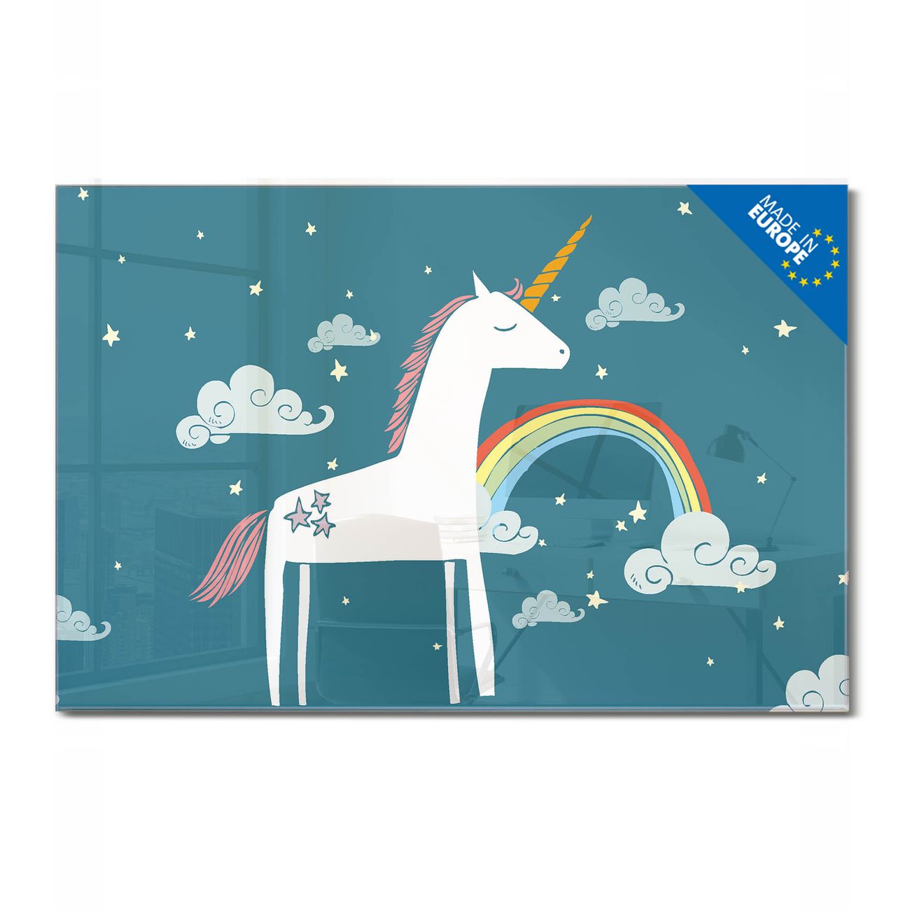 Glas Magnettafel im Querformat Motiv Einhorn