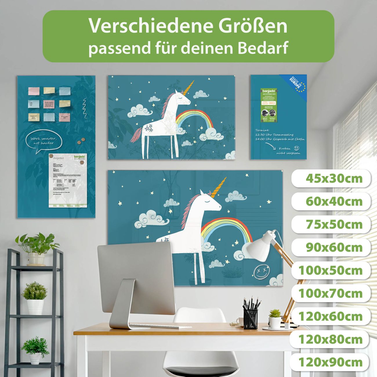 Jede Glas Magnettafel wird in unserer Werkstatt von Hand gefertigt und sorgfältig geprüft. So erhalten Sie ein echtes Qualitätsprodukt, das Funktion und Ästhetik perfekt vereint.?? Warum banjado?