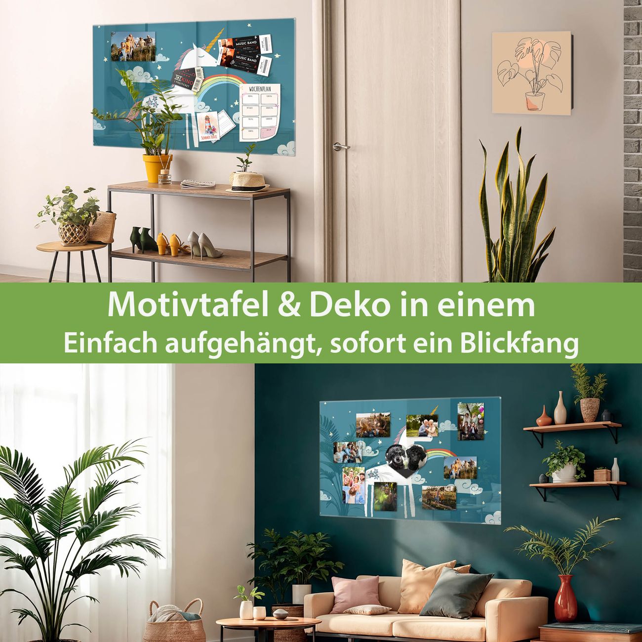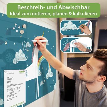 Die banjado Glas Magnettafel mit dem Motiv Motiv Einhorn verbindet Funktionalität mit Stil. Sie ersetzt das Zettelchaos durch klare Strukturen und bringt dabei eine warme, natürliche Atmosphäre in Ihr Zuhause. Ob im Büro, in der Küche oder im Eingangsbereich - dieses Design-Board zieht Blicke an und sorgt für Ordnung mit Charakter.
