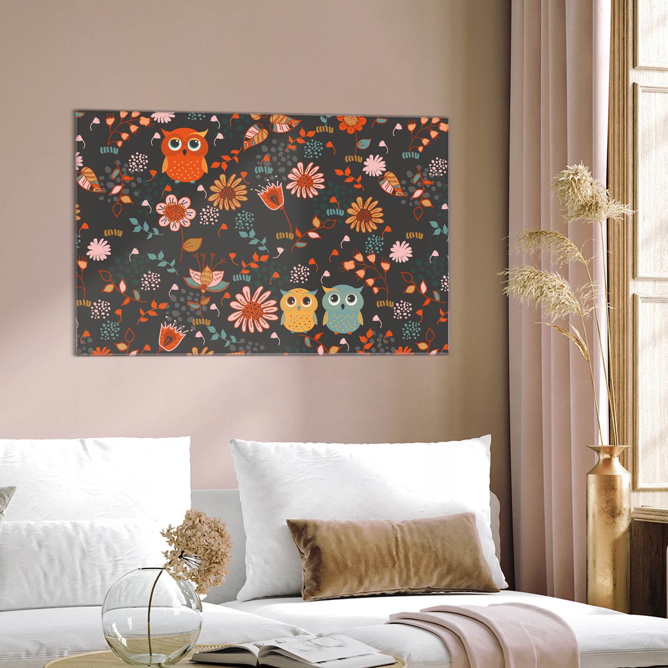 Glas Magnettafel im Querformat Einsame Eule