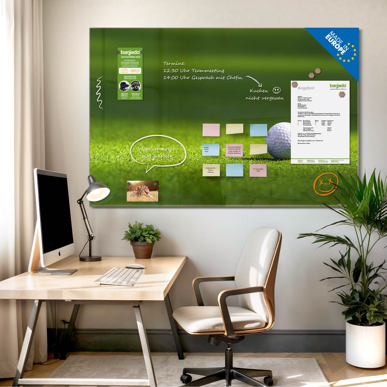 Die banjado Glas Magnettafel mit dem Motiv Motiv Einsamer Golfball verbindet Funktionalität mit Stil. Sie ersetzt das Zettelchaos durch klare Strukturen und bringt dabei eine warme, natürliche Atmosphäre in Ihr Zuhause. Ob im Büro, in der Küche oder im Eingangsbereich - dieses Design-Board zieht Blicke an und sorgt für Ordnung mit Charakter.