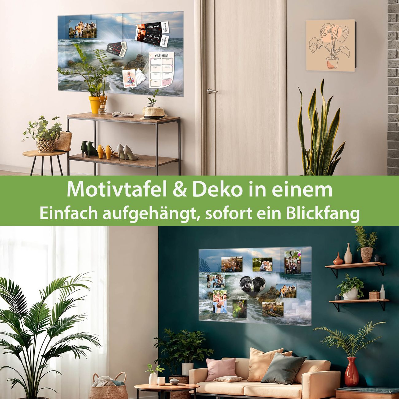 Dank der flachen Bauweise wirkt die Magnetwand fast schwebend an der Wand. Sie können sie mit Montagekleber elegant befestigen oder mit einem passenden Set klassisch verschrauben - beides sorgt für sicheren Halt und eine dezente Optik.