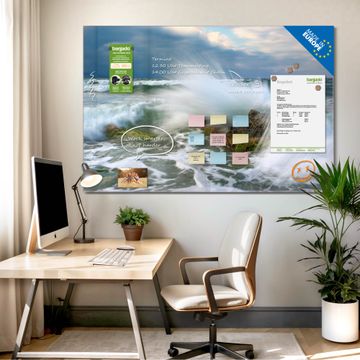 Die banjado Glas Magnettafel mit dem Motiv Motiv Einsteinwelle verbindet Funktionalität mit Stil. Sie ersetzt das Zettelchaos durch klare Strukturen und bringt dabei eine warme, natürliche Atmosphäre in Ihr Zuhause. Ob im Büro, in der Küche oder im Eingangsbereich - dieses Design-Board zieht Blicke an und sorgt für Ordnung mit Charakter.
