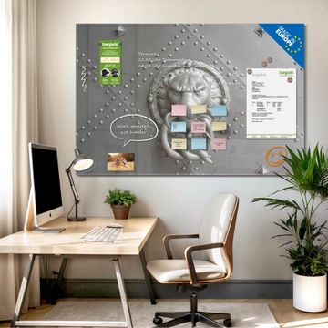 Die banjado Glas Magnettafel mit dem Motiv Motiv Eisentor verbindet Funktionalität mit Stil. Sie ersetzt das Zettelchaos durch klare Strukturen und bringt dabei eine warme, natürliche Atmosphäre in Ihr Zuhause. Ob im Büro, in der Küche oder im Eingangsbereich - dieses Design-Board zieht Blicke an und sorgt für Ordnung mit Charakter.