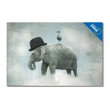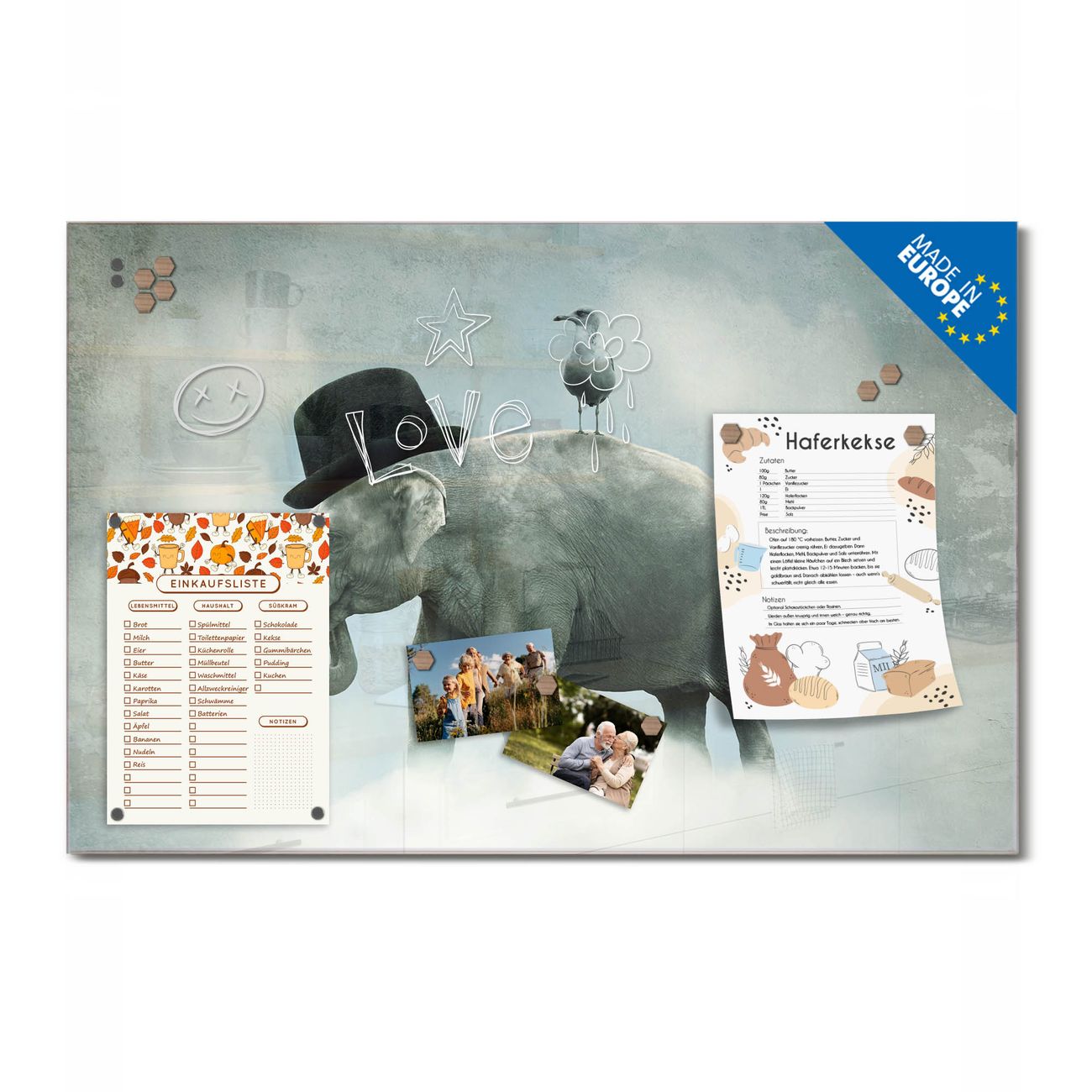 Glas Magnettafel im Querformat Motiv Elefant und Möwe