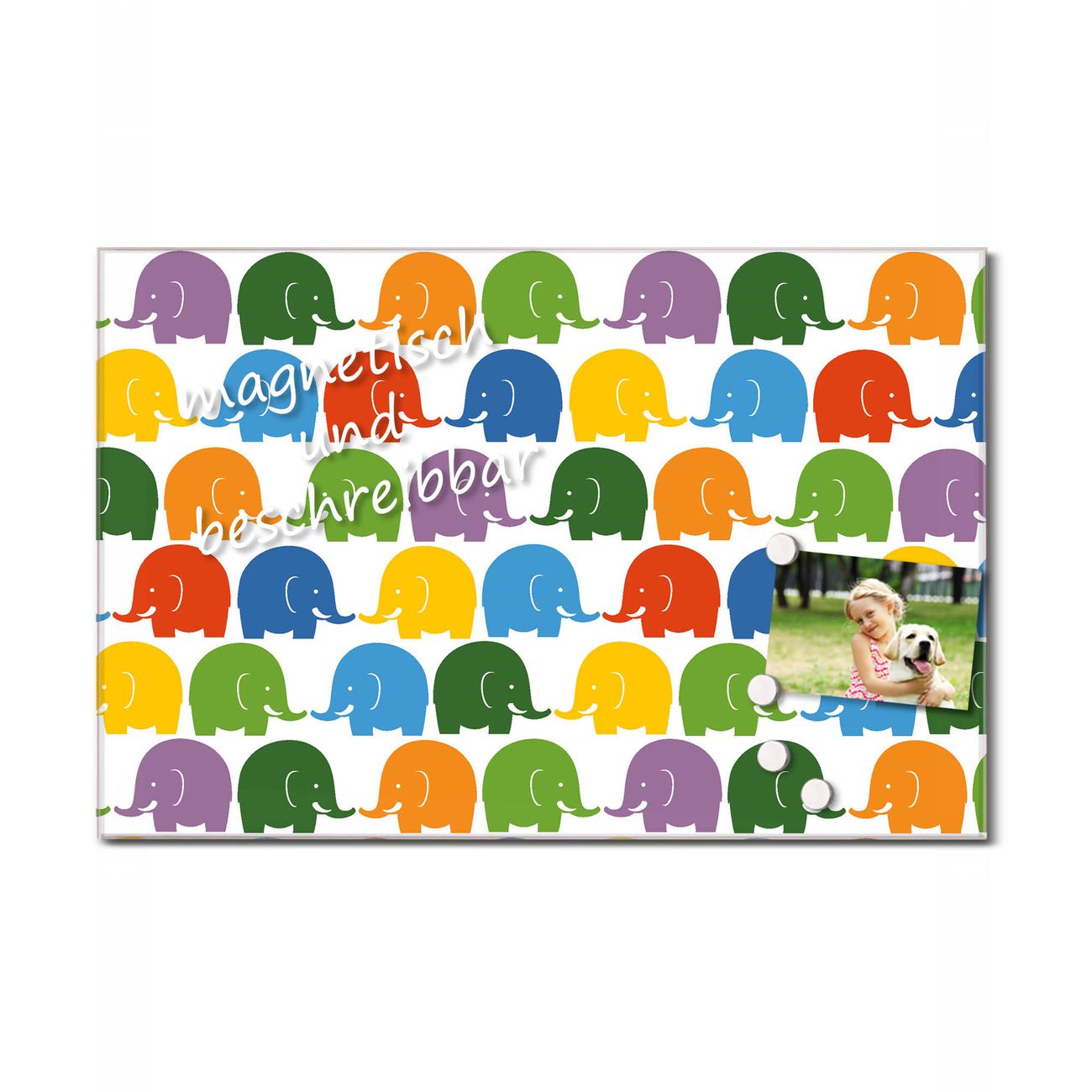 Glas Magnettafel im Querformat Elefantenkuss