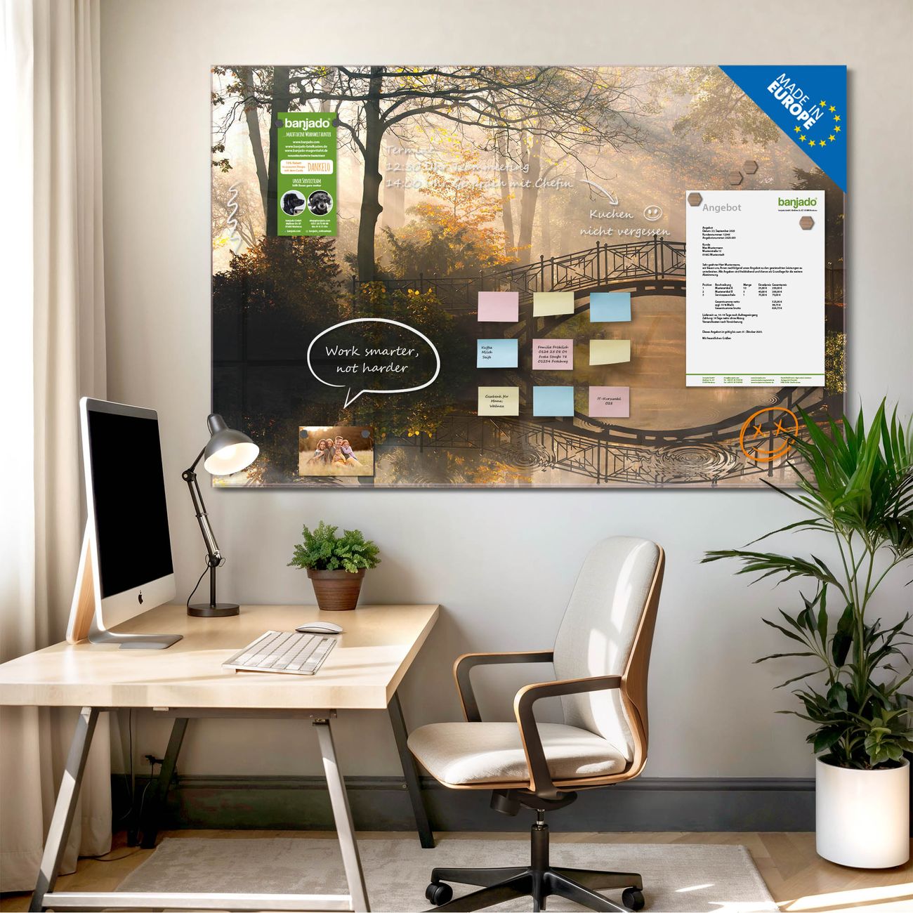 Jede Glas Magnettafel wird in unserer Werkstatt von Hand gefertigt und sorgfältig geprüft. So erhalten Sie ein echtes Qualitätsprodukt, das Funktion und Ästhetik perfekt vereint.?? Warum banjado?