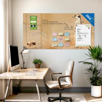 Auf der glatten Glasoberfläche lassen sich Termine, Rezepte oder Notizen ganz einfach mit Kreidestiften festhalten und rückstandslos entfernen. Starke Neodym-Magnete halten Ihre wichtigsten Erinnerungen sicher an Ort und Stelle. So entsteht Ihre ganz persönliche Ideenwand - jeden Tag neu.