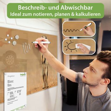 Die banjado Glas Magnettafel mit dem Motiv Motiv Henryk 2 verbindet Funktionalität mit Stil. Sie ersetzt das Zettelchaos durch klare Strukturen und bringt dabei eine warme, natürliche Atmosphäre in Ihr Zuhause. Ob im Büro, in der Küche oder im Eingangsbereich - dieses Design-Board zieht Blicke an und sorgt für Ordnung mit Charakter.