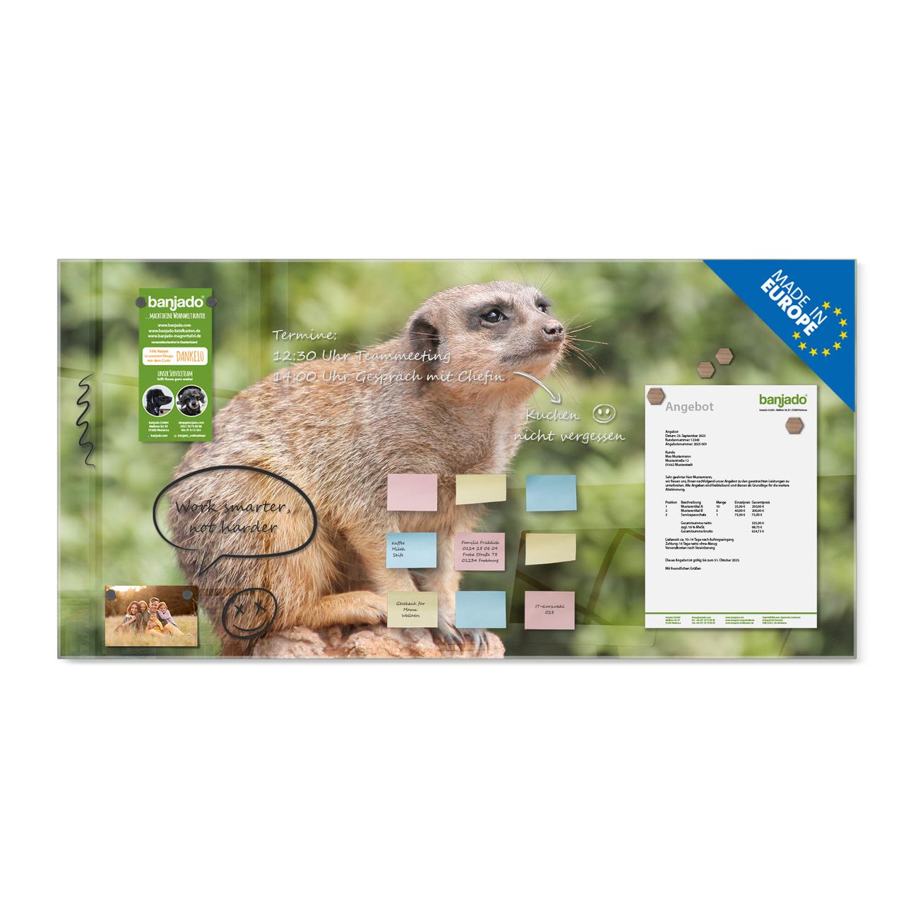 Glas Magnettafel im Querformat Motiv Sitzendes Erdmännchen