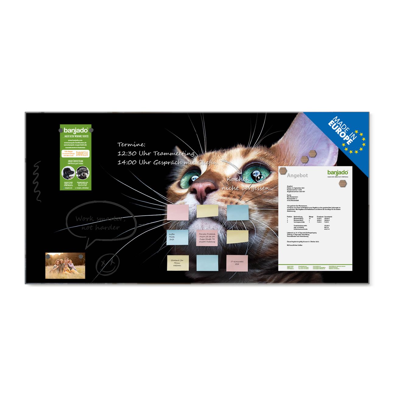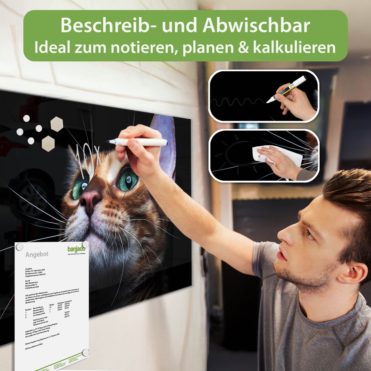Bitte beachten Sie, dass ausschliessliche spezielle Magnete an der Glastafel haften. Wir empfehlen banjado Neodym Magnete, diese sind durch uns auf Wirksamkeit geprüft.