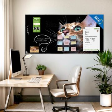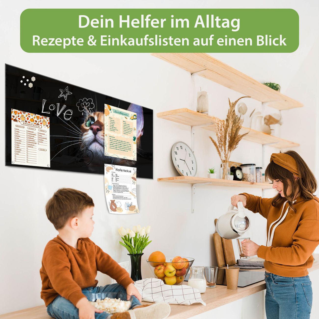 Auf der glatten Glasoberfläche lassen sich Termine, Rezepte oder Notizen ganz einfach mit Kreidestiften festhalten und rückstandslos entfernen. Starke Neodym-Magnete halten Ihre wichtigsten Erinnerungen sicher an Ort und Stelle. So entsteht Ihre ganz persönliche Ideenwand - jeden Tag neu.